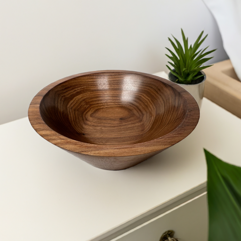 This Black Walnut Bowl has a soft brown color with gentle contrasting grain. I crafted its elegant shape so that each view of the bowl is appealing to the eye. This is a little gem that will accent any table.